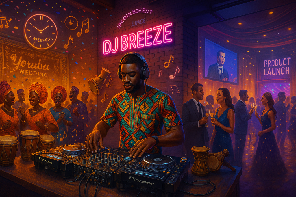 - Social Events: Weddings, birthdays, and “Owambe” parties rely on DJs to blend Afrobeat, Fuji, Amapiano, and timeless classics. A great DJ isn’t just playing music—they’re curating a cultural experience.