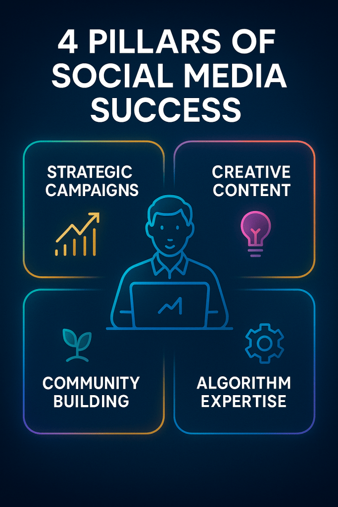 - ROI-Focused Strategies: We don’t just post—we align every tweet, Reel, and ad with your business goals (sales, leads, brand awareness).