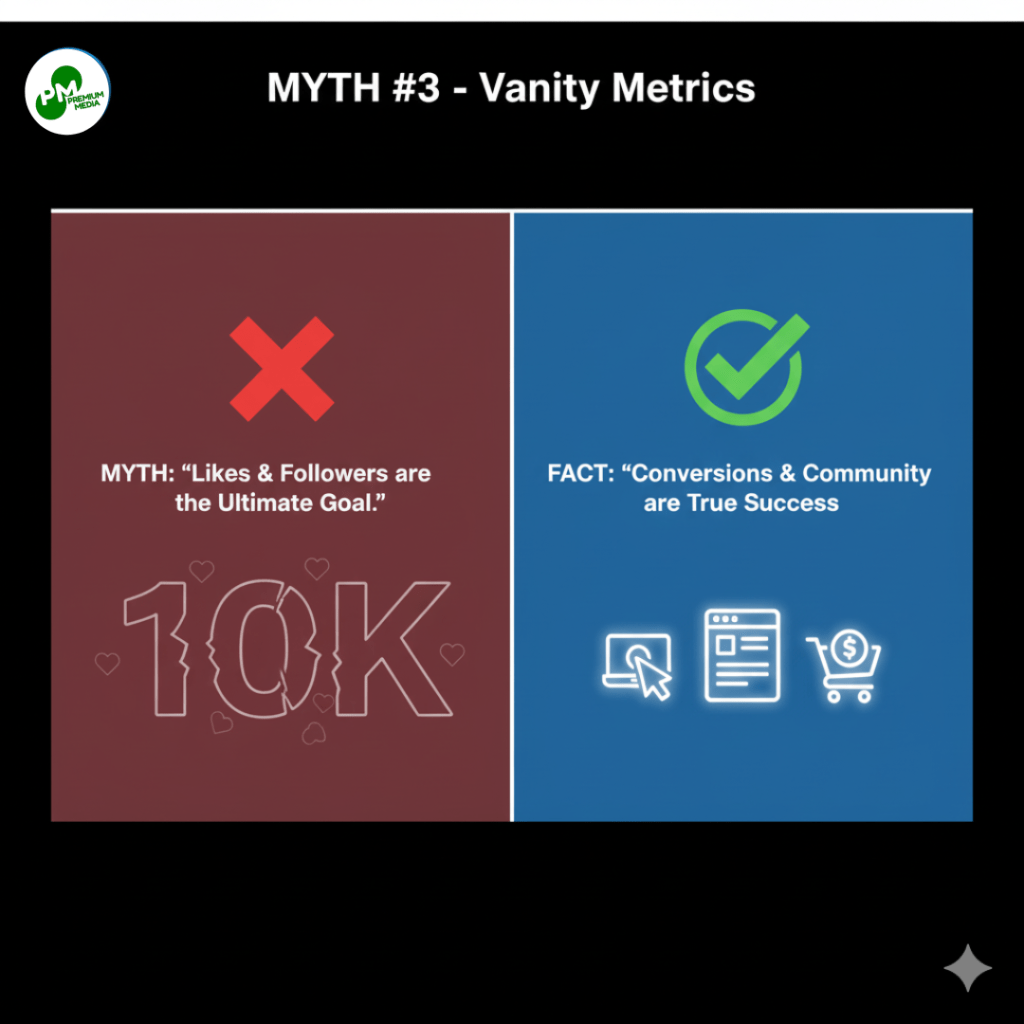 The Myth: A high follower count and lots of likes mean you’ve “made it.” This is the vanity metric trap.