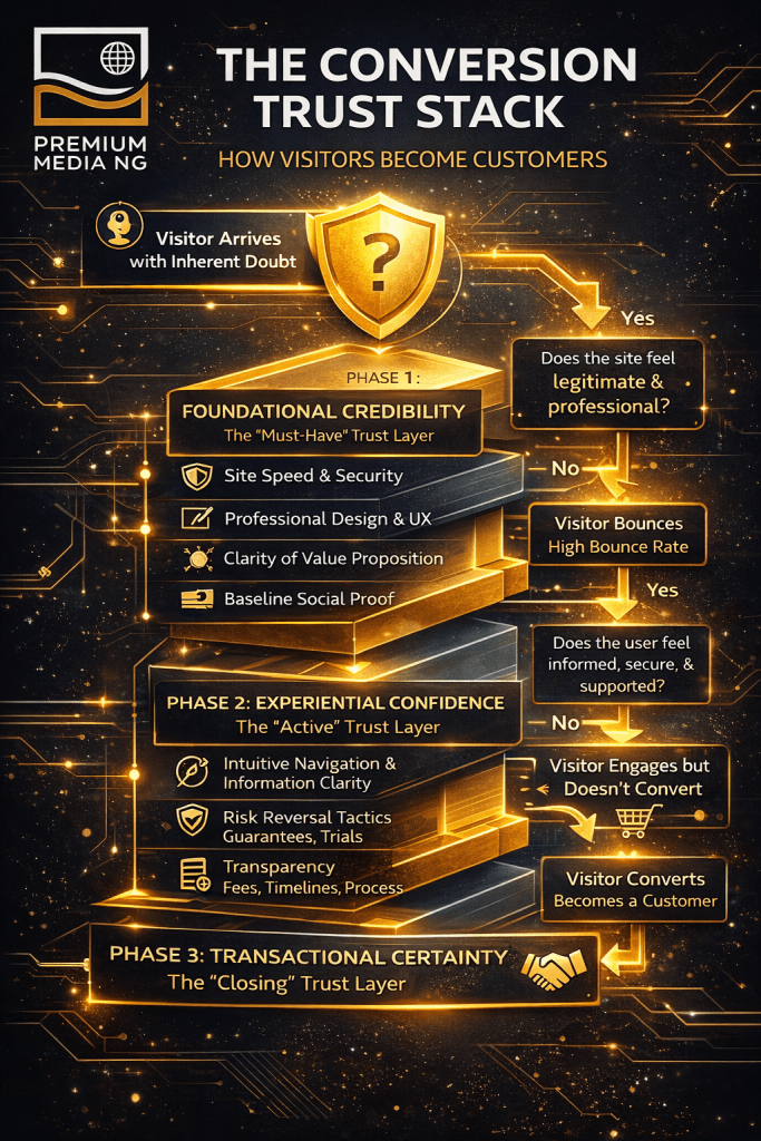 At Premium Media NG, we’ve moved beyond viewing Conversion Rate Optimization (CRO) as a game of changing button colors. True, sustainable conversion growth is an engineering discipline. It’s the systematic process of constructing an unshakable architecture of trust that guides a visitor from curiosity to conviction. This is the framework that transforms visitors into believers, and believers into loyal customers.