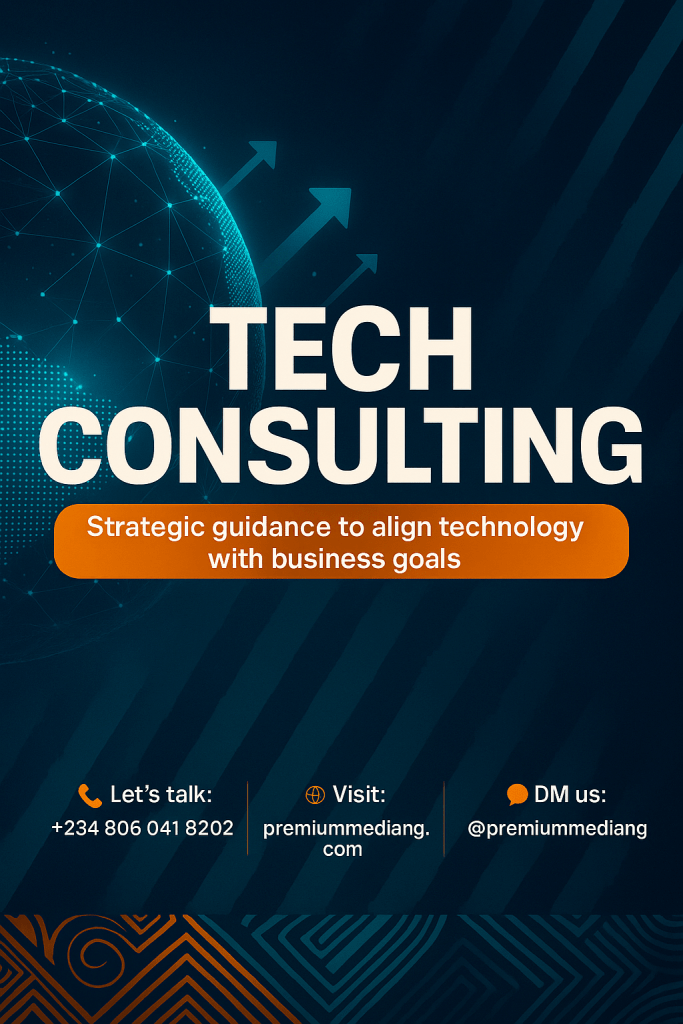 In a rapidly evolving digital landscape, businesses can’t afford to implement technology in isolation. Tech consulting bridges the gap between cutting‑edge tools and real‑world business objectives, ensuring every investment accelerates growth, reduces risk, and maximizes ROI. At Premium Media NG, our expert consultants deliver strategic guidance that aligns your technology roadmap with your company’s vision—turning innovation into measurable success.